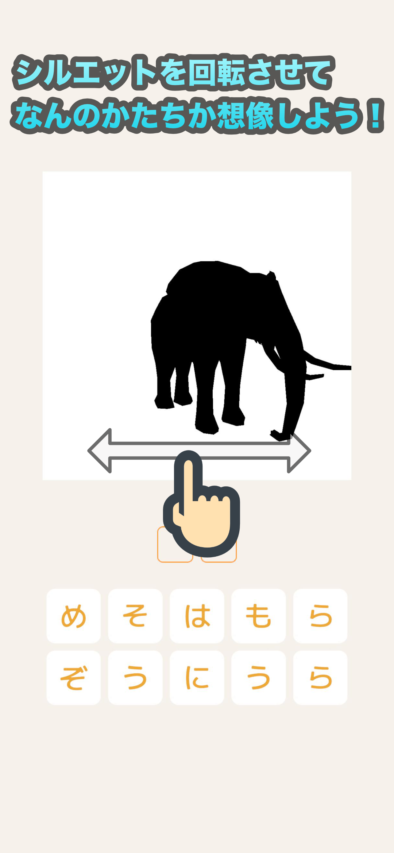 シルエットをスワイプで回転させて、なんのかたちか想像しよう!